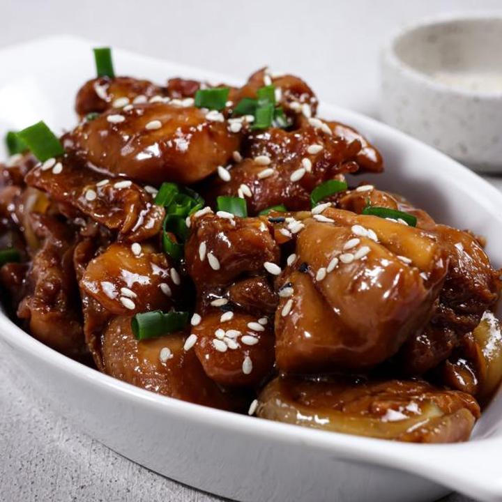 Kurczak w sosie miodowo-musztardowym Zestawienie słodkiego miodu z wyrazistą musztardą podkreśla soczystość mięsa.